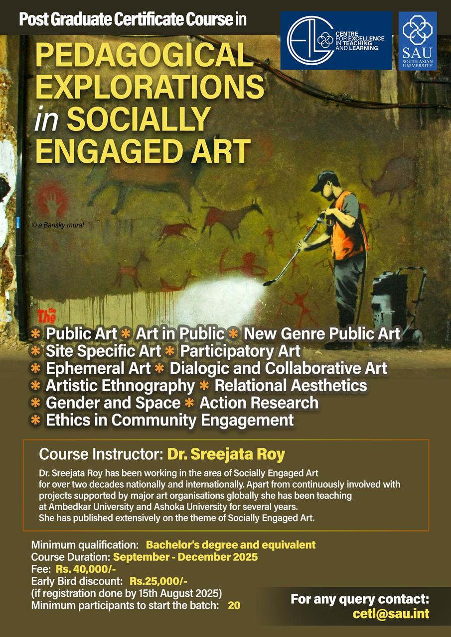 Social Engaged Art covers various forms of art, including public art, community art, collaborative art, site-specific art, and participatory art. The curriculum explores the history, processes, stages, strategies, and ethical considerations related to these art forms. Additionally, it examines their applications across various disciplines such as sociology, history, environmental science, gender and media studies, and urban studies within social contexts.